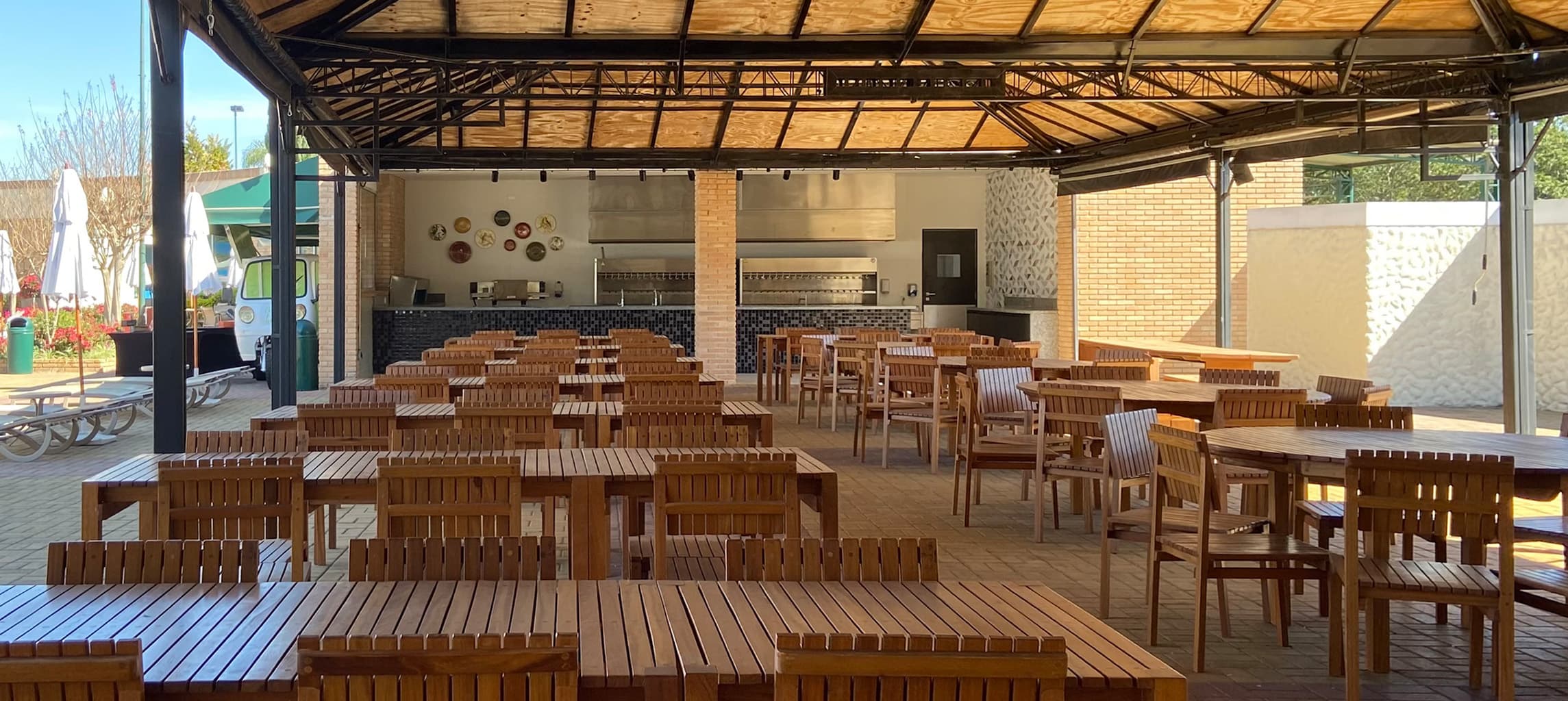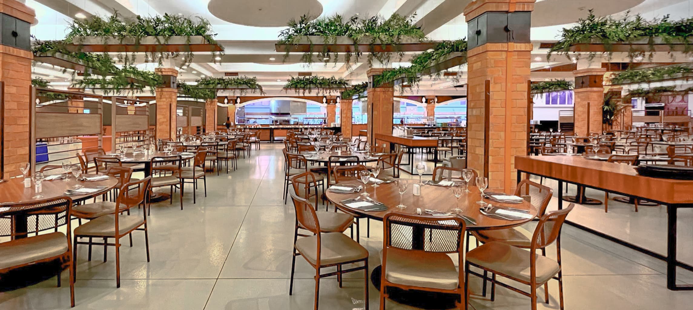 Com uma área ampla de mais de 2.000 m², o espaço acomoda confortavelmente até 900 pessoas. Seu ambiente arejado e versátil é ideal tanto para grandes refeições quanto para eventos e ocasiões especiais, contando com infraestrutura completa de Show Cook.