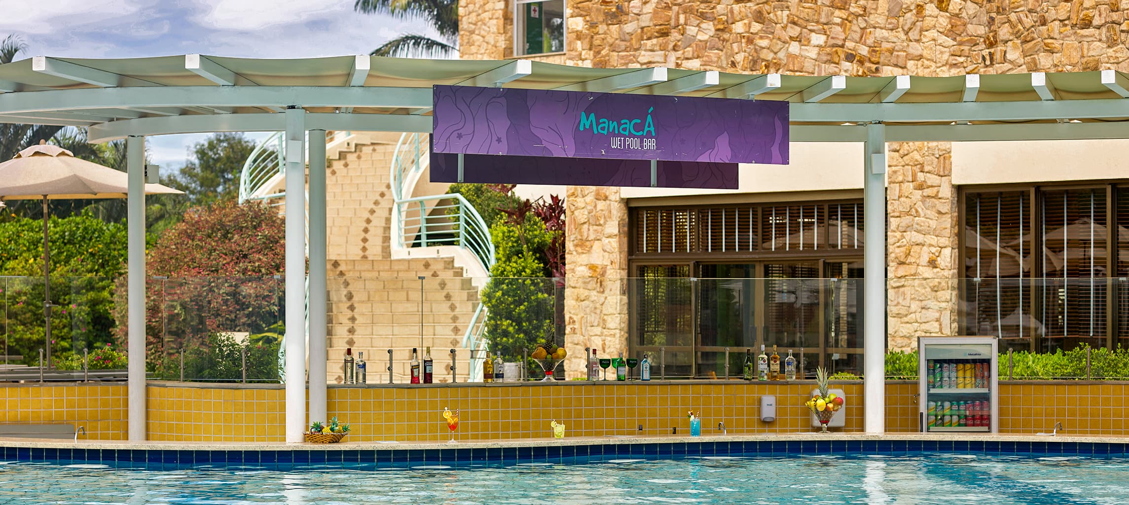 Localizado à beira da piscina Grand Pool perfeito para desfrutar de cervejas, coquetéis e soft drinks sem precisar sair da água. *Consulte valores.