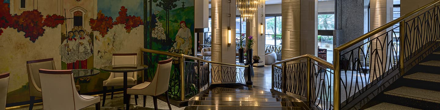 Exclusiva suíte de 57 m² com cama king size e sala de estar privativa. O ambiente sofisticado conta com duvet 100% algodão 400 fios, roupão, chinelos e kit de amenidades diferenciado, além de máquina de café expresso e espaço para trabalho.