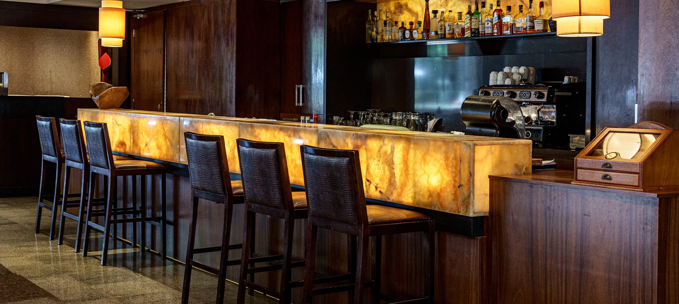 Coquetéis, cachaças e o melhor café Blend Bourbon. Diariamente: das 9h à 0h40. Sextas-feiras: Jazz Night. Música ao vivo de quinta a sábado.