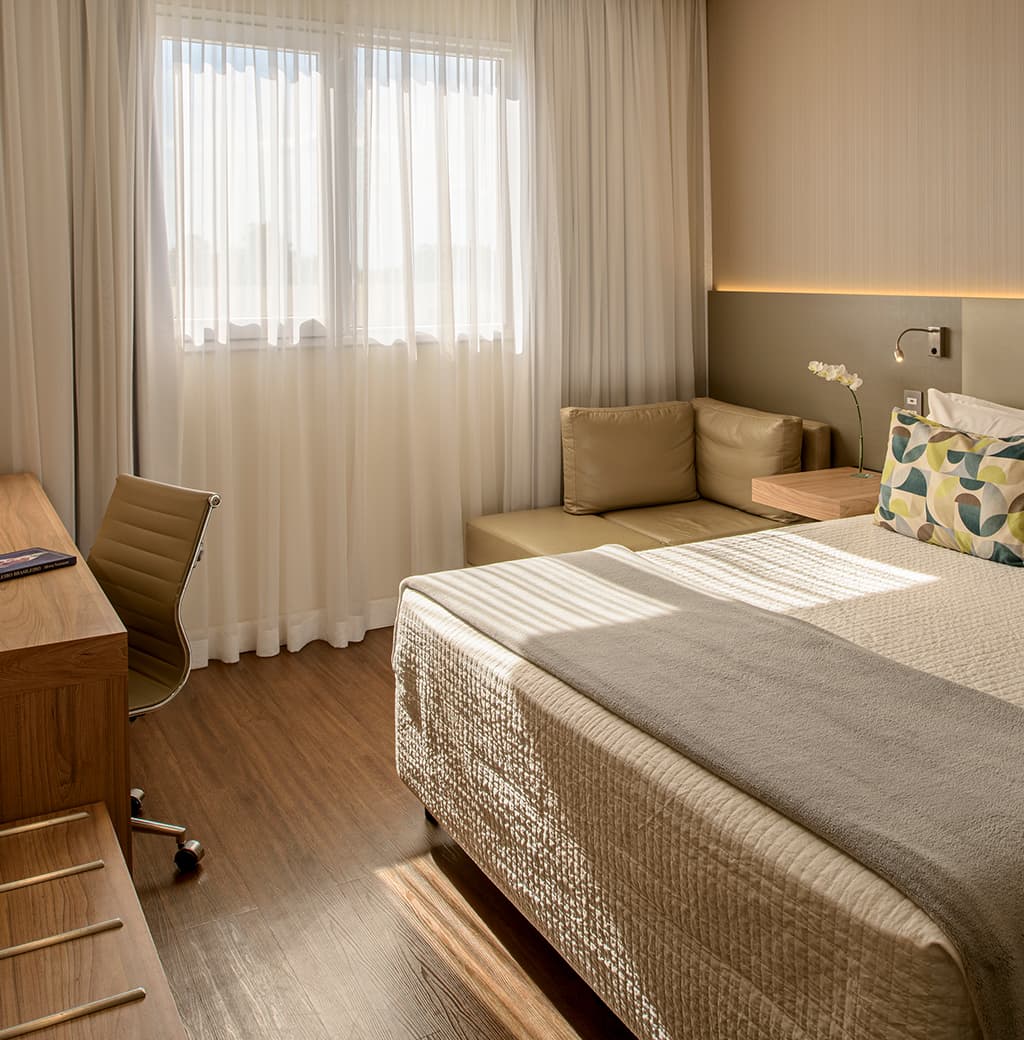 O Rio Hotel by Bourbon Campinas traduz a essência da hospedagem urbana com uma proposta leve, funcional e acolhedora. Localizado a poucos minutos do Shopping Parque Dom Pedro e da Expo Dom Pedro, além de oferecer fácil acesso ao Aeroporto de Viracopos. Seus ambientes foram planejados para favorecer tanto o descanso quanto a produtividade, otimizando sua rotina sem abrir mão do conforto.