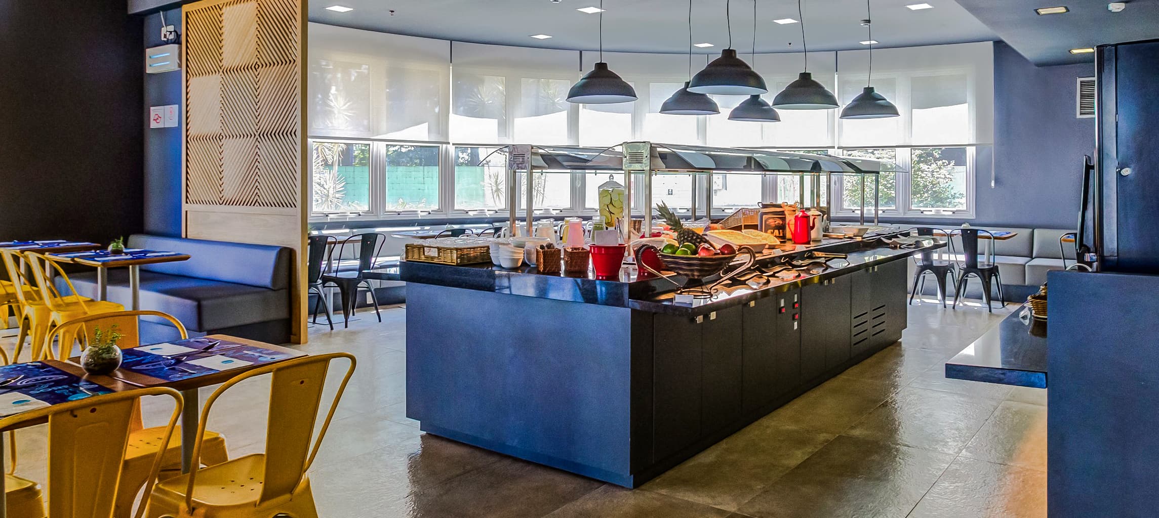 Café da manhã (segunda a sexta): das 6h às 10h. Café da manhã (sábados, domingos e feriados): das 6h às 10h30. Almoço: diariamente das 12h às 14h. Jantar: diariamente das 19h às 21h30.